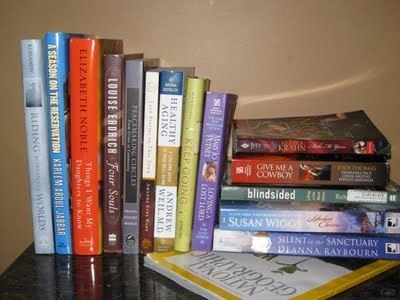 Hmm, I like this though, you can easily read the titles. I see Betina and Susan Wiggs and hmm...Healthy Aging? May have to check that one out myself. ;-)