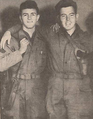 Sgt. Mathew Caruso, left, and Father Connie Griffin in Korea. Today (June 25) marks 65th anniversary of the beginning of the Korean War, when 75,000 North Korean soldiers poured across the 38th Parallel, captured the South Korean capital of Seoul and drove the small force of American defenders and Republic of Korea troops into a perimeter around the southern port of Pusan.Nineteen-year-old Marine Sgt. Mathew Caruso was at Camp Lejeune, N.C., where he lived off base in a small apartment with his wife of a few months, Betty. During the day Mathew was assigned as a chaplain's assistant.