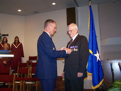 Pilot Paul Swofford receiving the Silver Star"The Kassel Cassettes" on MP3 CDs is available in my eBay store for $14.95. It includes more than 22 hours of interviews with pilots, tail gunners, bombardiers, navigators, prisoners of war, and a widow and two sisters of fliers killed in the battle. These are MP3 CDs and will not play on most CD players or in older vehicles. Many newer cars have CD players that accommodate MP3s, and they will also play on virtually all computers and tablets and in CD and DVD players that specifically say they play MP3s. The set is also available as regular discs, but due to the fact that each regular CD holds at most 70 minutes of material, the entire set fills 21 CDs and is more expensive. Following is a sampling of tracks from the set which will provide an overview of the battle.
