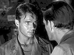 A scene from The Twilight Zone, "The Purple Testament" I should have known better than to reference The Twilight Zone in the introduction to my new two-CD audiobook "Premonitions, Visions, Nightmares and Other Unexplained Circumstances." Of course I remembered the episode about a World War II soldier who can look into another soldier's face and tell if that soldier is going to be killed, what could be wrong with mentioning that? YouTube, that's what.So I go to YouTube and do my due diligence, typing Twilight Zone and World War II into their search thingie and before you can say Clem Kadiddlehopper I learned not only that I was looking for Episode 19 but that it was titled The Purple Testament.