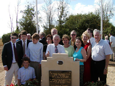 John Sweren, center, at the dedication of a monument in 2005 where his plane crashed in Fierville-Bray, France.