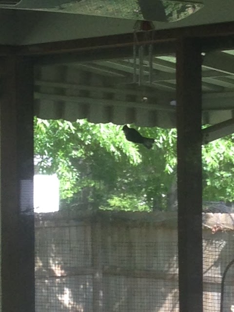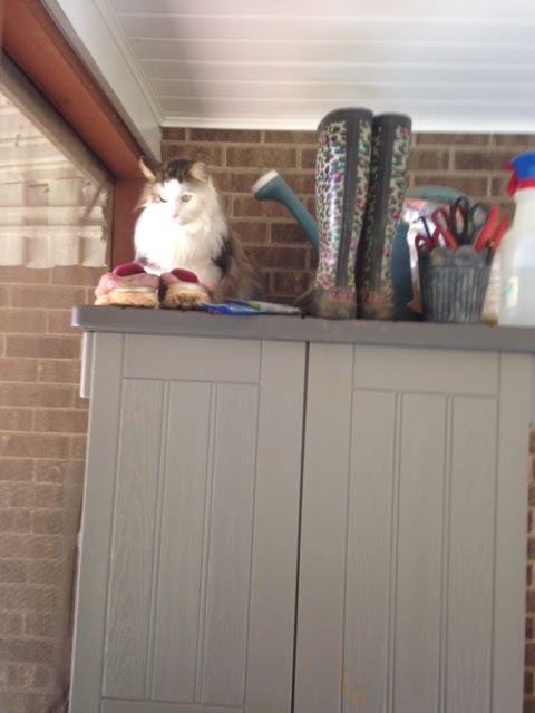 Sitting on the tool shed.