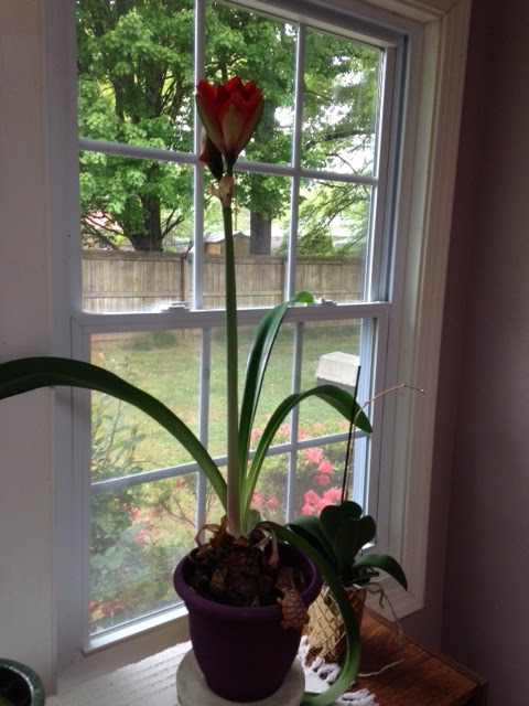 Our Christmas Amaryllis decided to celebrate Easter instead and opened up Easter morning.
