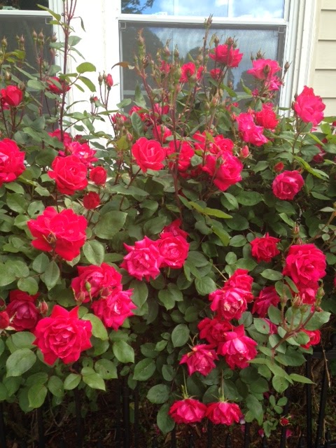 The roses are blooming.