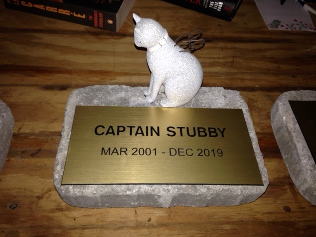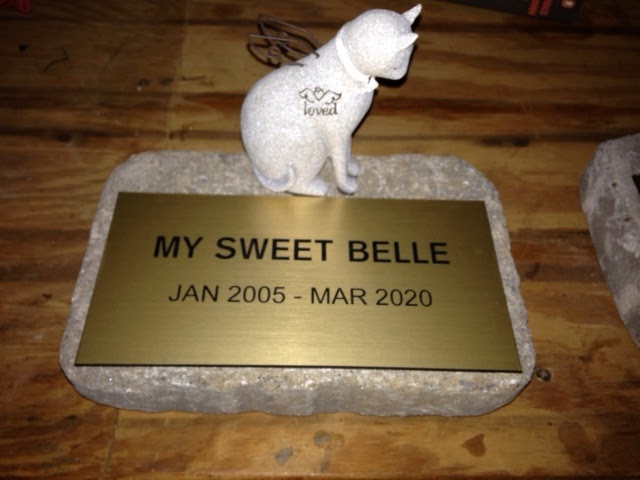 AND...Do you ever make memory stones for your garden? I order name plates then glue them to bricks. Since I had the angel kitties I added them to the stones.