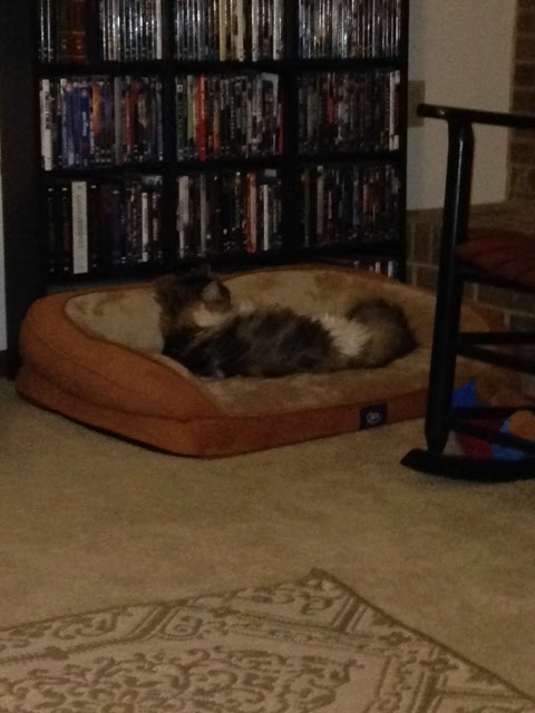 We were home four days then headed for Greenville to watch the kids for a week while the baby's parents flew him to Memphis to have his surgery. Meet their cat Wally or Waldo as I call him.