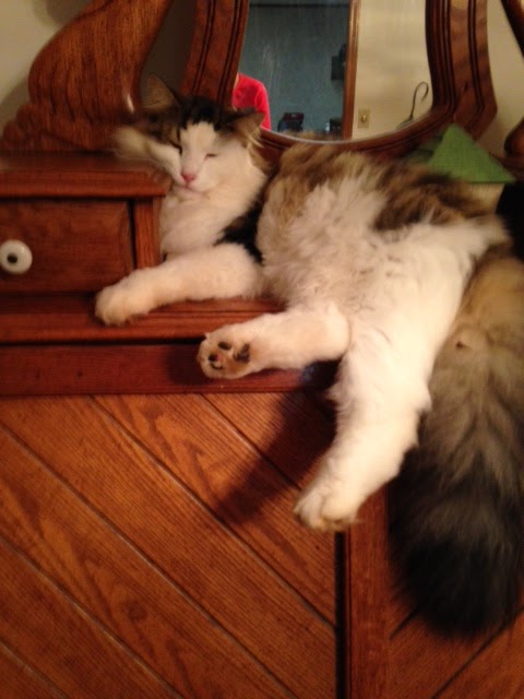 Beautiful, hey?We were home four days then headed for Greenville to watch the kids for a week while the baby's parents flew him to Memphis to have his surgery. Meet their cat Wally or Waldo as I call him.