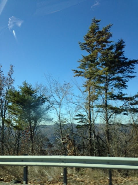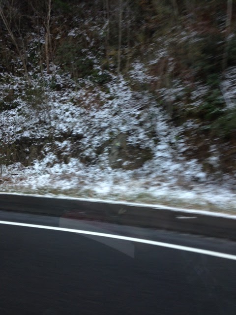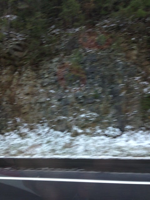 On the way, we saw snow in the mountains in the Pisgah National Forest. Apologies for the blurry pictures, they were taken from the car.