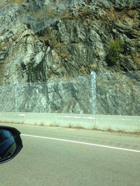 Nice, huh? And yup that's me in the mirror. The pictures came out dark and don't really do it justice.Now back on the road and driving through the mountains..