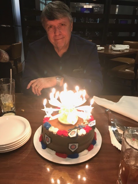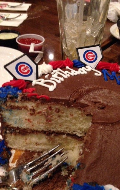 The next birthday celebration was with my family at Harrah's where he got cake #2. By the by, loved the candle. It opened like a lotus flower. As you can see he's a Cub's fan.
