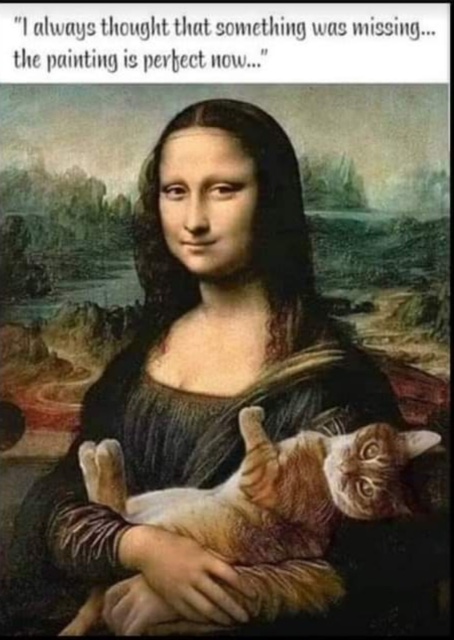 AND...Since this seems to be turning into a cat post, I'm including a pic a friend of mine sent me. He's a dog person, but he keeps trying to convert:) Heh.