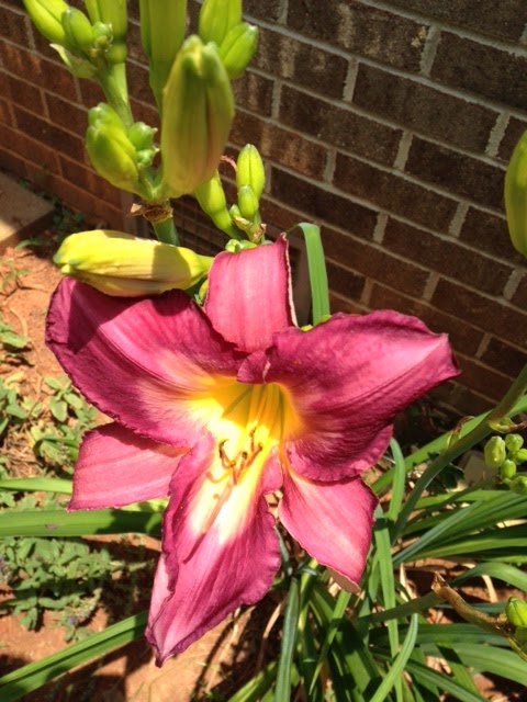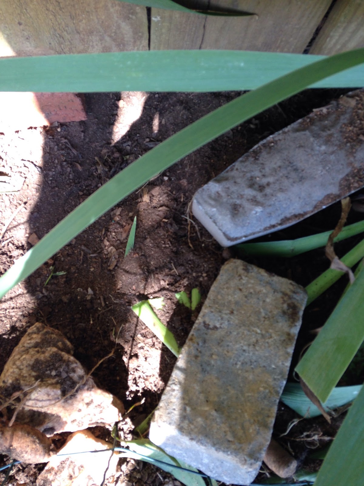 Then he pushed the bricks out of his way that were positioned behind the Irises to keep him from digging under the fence...and dug his way out.