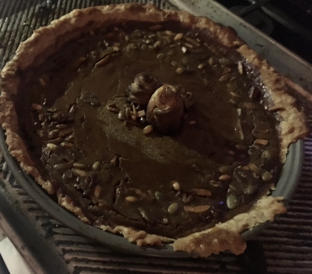 We had a wonderful one with the DD and DSIL. They kindly did all the cooking. All I was responsible for was the fudge and Republican Cookies. Heh. (Laura Bush's Cowboy Cookies). DD made this pumpkin pie and it was delicious.
