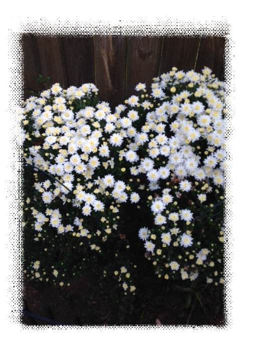 Another picture of my white mum that I planted last year. Looks like two there, but only one. Someone with four paws, who shall remain nameless but not blameless, walked through it. A little bit of gardening trivia: Mums supposedly have a better chance of survival if planted in the spring instead of the fall. I ask you, can you even buy mums in the spring?