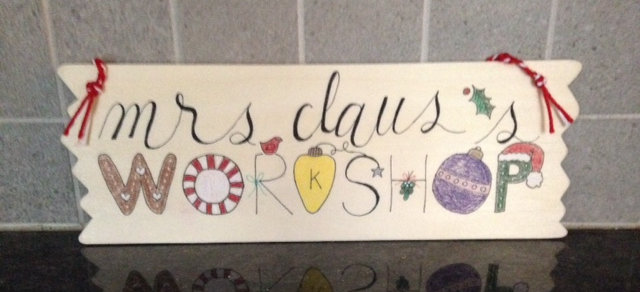 Looky! Looky! I've been on the prowl for a Mrs. Claus's Workshop sign for two years to hang over the door of the spare bedroom where I keep my Christmas secrets and do my wrapping every December. I mentioned it to the delightful and talented CJ and look what I got! I'm very calm and sedate on the outside but doing the Happy Dance on the inside. Thank you, CJ!AND...