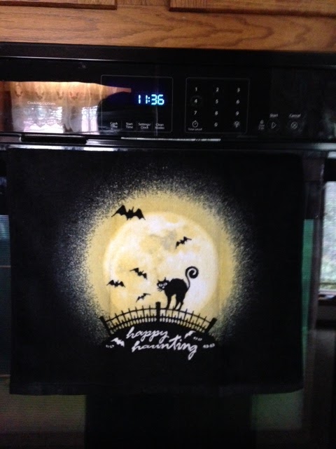 The HH surprised me with a Halloween dishtowel. Purr-fect right?