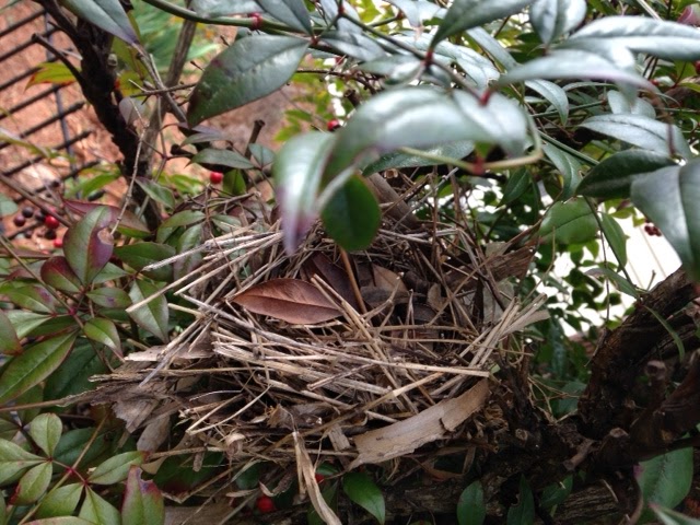 I found this little nest in one of the bushes by the garden. Thank goodness the parents-to-be realized this wasn't a safe neighborhood to bring little ones into and moved out before they started a family.NO! REALLY?