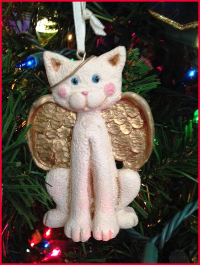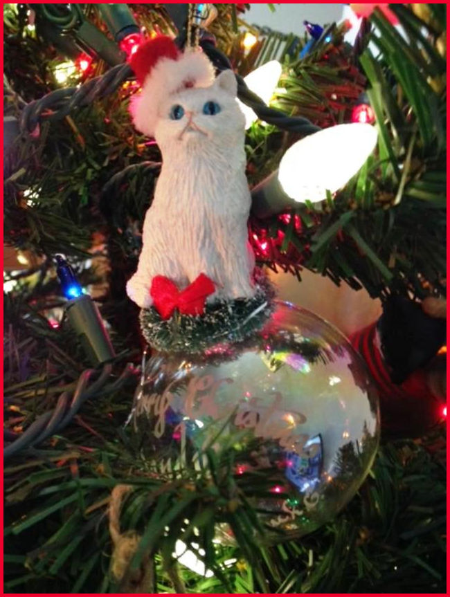 After putting up Frosty, the next step was the Christmas tree. Below is the tree topper and ornaments collected over the years, some new, some old. As you can see, there is no theme....though, if there were it would probably be cats.