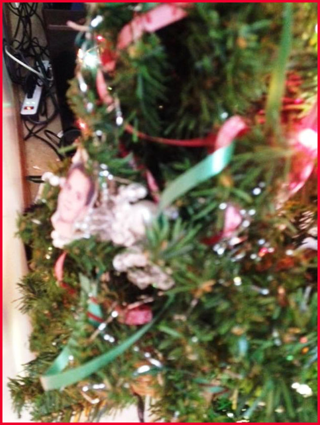 This one is hard to see. It's a Christmas Tree my son made in grade school with his picture on it.