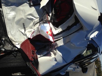 We had just picked up my sister and brother-in-law at the Charlotte airport and were heading into the mountains. We got as far as Hickory. The HH stopped for a yellow light and by the time it turned red we were catapulted through the intersection and landed on the other side. It happened so fast we didn't even know what happened until the car stopped. My sister's headrest was torn off. Her suitcase was broken in half, windows were knocked out and the roof was split. My brother-in-law went by ambulance to the hospital to get checked out and the rest of us under our own steam.