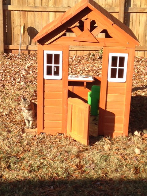 We spent Wednesday putting together the grands playhouse. As you can see, Captain approves.