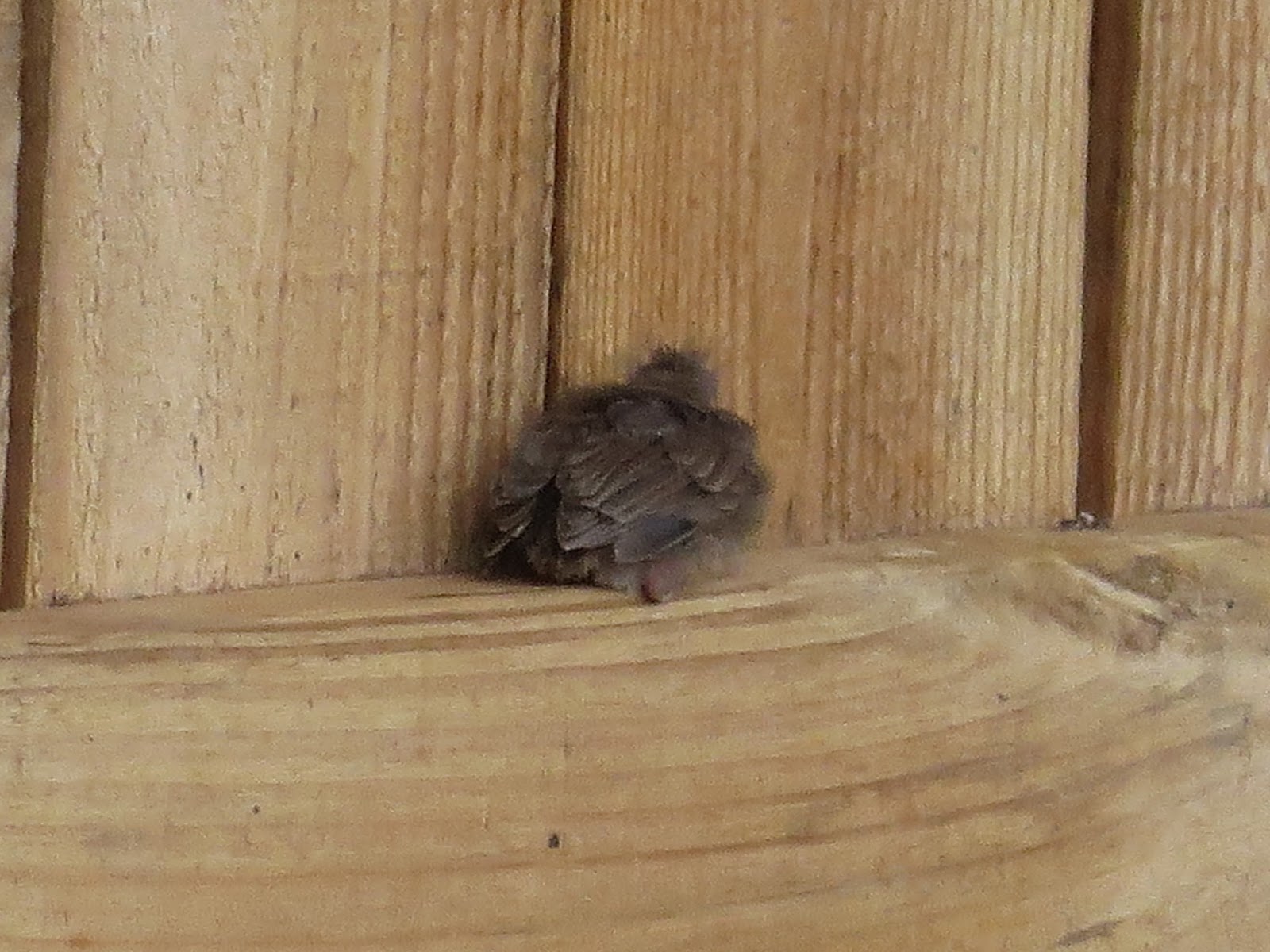 One of the neighbor's chickensAnd....I think there's mockingbird babies on the other side of the fence the way I was getting yelled at yesterday.