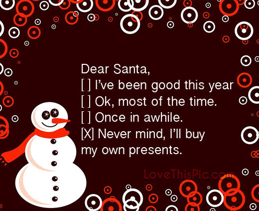 Well, it's official, we started our Christmas shopping Friday. Pretty much got the hh taken care of...notice I say pretty much:) Considering it was a Friday night in December the mall just wasn't that crowded. Freaky huh? I'm assuming online shopping has a lot to do with it. Remember the days before online shopping and the recession? You had to be primed with caffeine, vitamins and wear protective gear, because if you wanted to actually make it to a specific rack of clothing or get to the toy aisle you had to be prepared for evasive action and defensive maneuvers. Ah, the good ole days.So have you started your shopping or are you one of those disgusting, err efficient, individuals that's already done?