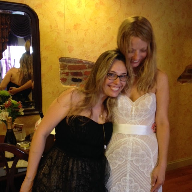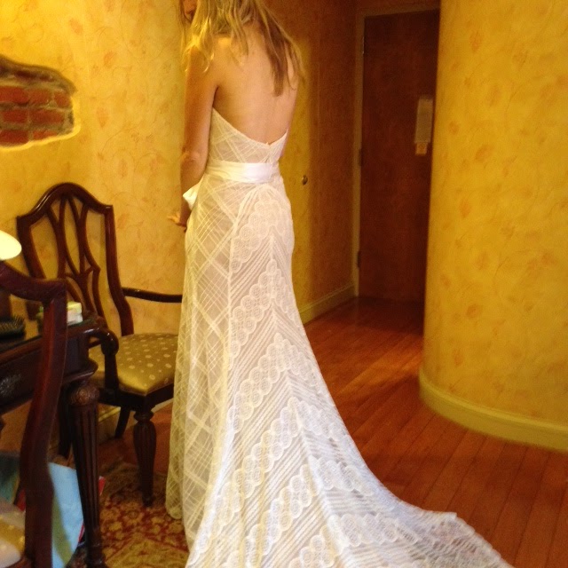 So she found something online and ordered it. She forgot to have it overnighted so there was a real fear it wouldn't arrive in time for the wedding. Luckily, it arrived in time. Unfortunately it was three sizes too big for her. You can tell by the pics my daughter is very slender.