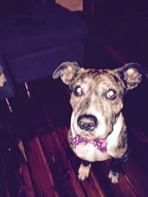 Isn't this guy a handsome fellow? He belongs to the couple who was hosting a couples shower for my daughter and her fiance. He'd plop down in front of you and when you held out your hand he'd shake. Then look at you with soulful eyes waiting for his treat, which consisted of either fresh radish slices or carrot slices. He loved them. This boy is about ten years old and a pit mix. Pits are outlawed in England. One of his human parents is American, the other is British (the husband). The husband wants to move back to Britain. Given the laws against pits, the couple has decided to stay in America as long as the dog lives. When he passes, they'll move back. Wouldn't it be wonderful if all pet parents were that engaged?