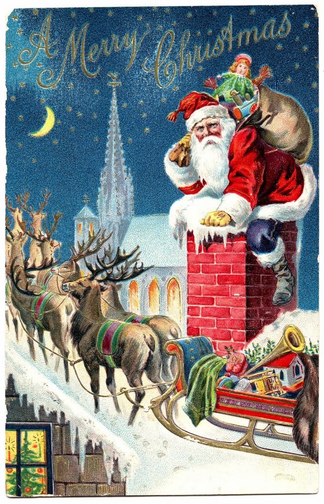 'Twas the night before Christmas, when all through the house Not a creature was stirring, not even a mouse; The stockings were hung by the chimney with care, In hopes that St. Nicholas soon would be there; The children were nestled all snug in their beds; While visions of sugar-plums danced in their heads; And mamma in her 'kerchief, and I in my cap, Had just settled our brains for a long winter's nap, When out on the lawn there arose such a clatter, I sprang from my bed to see what was the matter. Away to the window I flew like a flash, Tore open the shutters and threw up the sash. The moon on the breast of the new-fallen snow, Gave a lustre of midday to objects below, When what to my wondering eyes did appear, But a miniature sleigh and eight tiny rein-deer, With a little old driver so lively and quick, I knew in a moment he must be St. Nick. More rapid than eagles his coursers they came, And he whistled, and shouted, and called them by name: "Now, Dasher! now, Dancer! now Prancer and Vixen! On, Comet! on, Cupid! on, Donder and Blixen! To the top of the porch! to the top of the wall! Now dash away! dash away! dash away all!" As leaves that before the wild hurricane fly, When they meet with an obstacle, mount to the sky; So up to the housetop the coursers they flew With the sleigh full of toys, and St. Nicholas too— And then, in a twinkling, I heard on the roof The prancing and pawing of each little hoof. As I drew in my head, and was turning around, Down the chimney St. Nicholas came with a bound. He was dressed all in fur, from his head to his foot, And his clothes were all tarnished with ashes and soot; A bundle of toys he had flung on his back, And he looked like a pedler just opening his pack. His eyes—how they twinkled! his dimples, how merry! His cheeks were like roses, his nose like a cherry! His droll little mouth was drawn up like a bow, And the beard on his chin was as white as the snow; The stump of a pipe he held tight in his teeth, And the smoke, it encircled his head like a wreath; He had a broad face and a little round belly That shook when he laughed, like a bowl full of jelly. He was chubby and plump, a right jolly old elf, And I laughed when I saw him, in spite of myself; A wink of his eye and a twist of his head Soon gave me to know I had nothing to dread; He spoke not a word, but went straight to his work, And filled all the stockings; then turned with a jerk, And laying his finger aside of his nose, And giving a nod, up the chimney he rose; He sprang to his sleigh, to his team gave a whistle, And away they all flew like the down of a thistle. But I heard him exclaim, ere he drove out of sight— “Happy Christmas to all, and to all a good night!”~Clement Clarke Moore who wrote it for his children