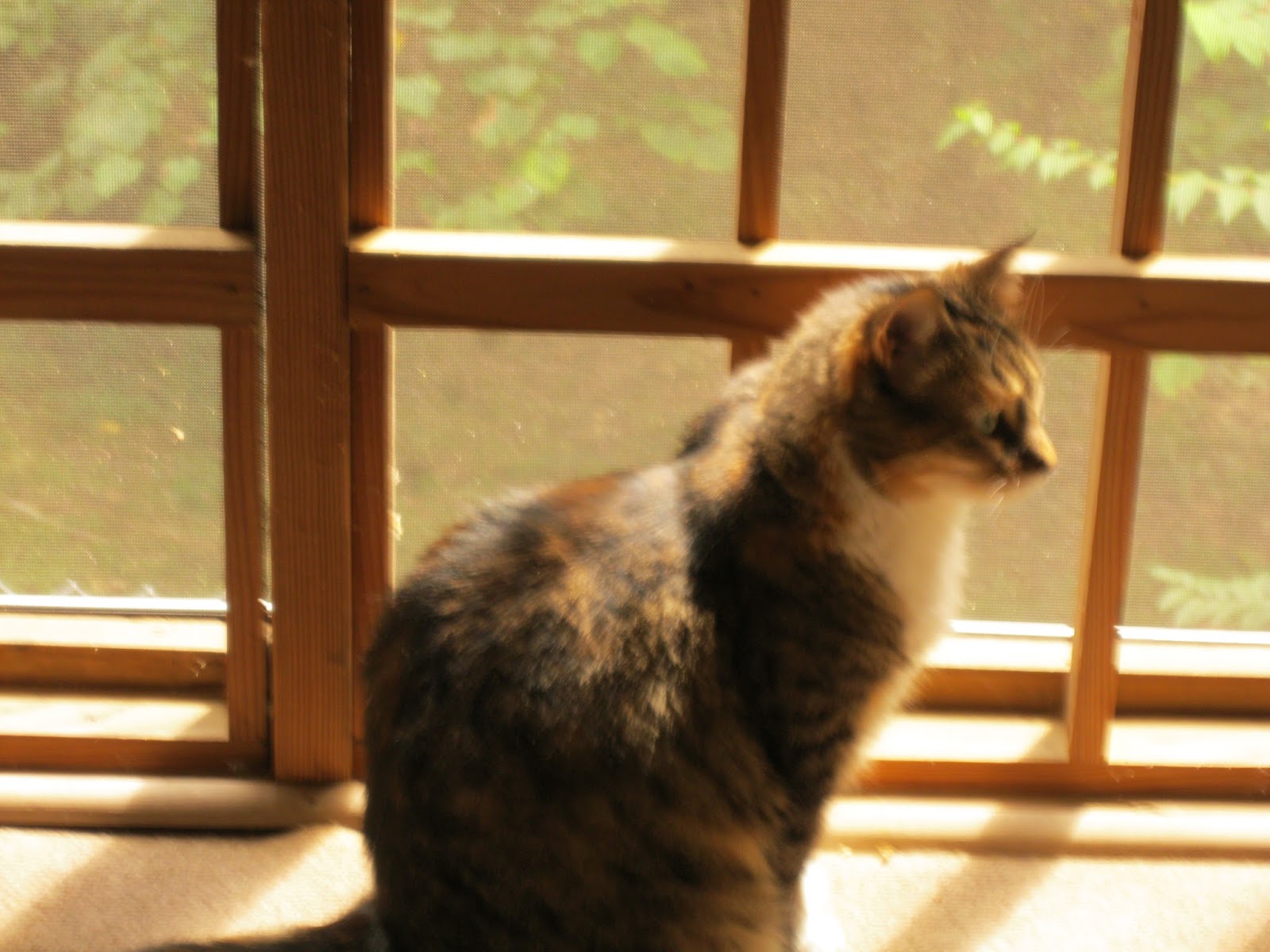 Per my usual weekend routine: Saturday, I grabbed my coffee, computer and E Reader and headed out for the porch in my sundress. Now the majority of the female readership are probably thinking sundress? Instead of cutoffs or shorts? It's the weekend for goodness sake. You were at home. Why a dress? Well, it was Saturday. Saturday is laundry day and pickings were slim. And its a very comfortable dress. But anyhoo. I sat out there about ten minutes before I hied myself back in and put on long pants and a long-sleeved shirt. It was sixty degrees out there! First chilly day we've had since...well just let me say its been a good long while. I stayed out about an hour. The air was crisp and the breeze caused the rustling leaves to sound like rain.Being more intrepid, Belle chose to stay out after I gave up and headed for the house and warmth.