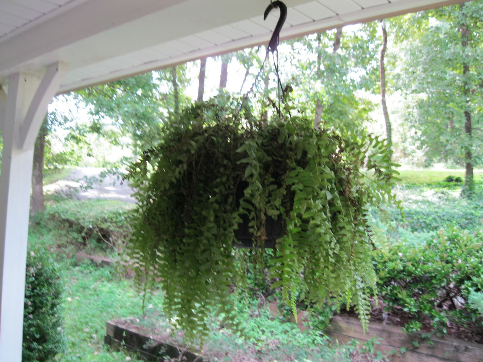Let's have a brief moment of silence for my poor fern that was sacrificed to the bird's nest. I haven't watered it in weeks, afraid I'd disturb mom and ruin eggs or drown babies. Even though we've got bird droppings on the porch, there's been no animated sounds coming from the fern and the eggs are way past the hatching point. The last time I checked the nest, mom shot out of there in a twitter so I've left it alone. I got up my nerve yesterday and peaked inside. No mom. No Babies.There'd been a nest built over the old nest and instead of four eggs there was one. My best guess: A cowbird removed the little wren's eggs and left one of hers but Mama Wren was too smart to dupe and deserted the nest. You got to admit those cowbird's have taken adoption to a whole new level. Lay the egg and get someone else to raise the offspring. Anyway...that's my theory and I'm sticking to it:)