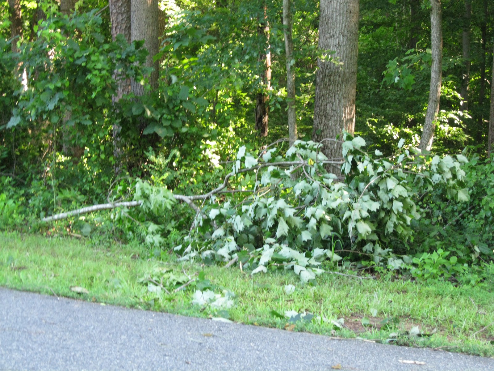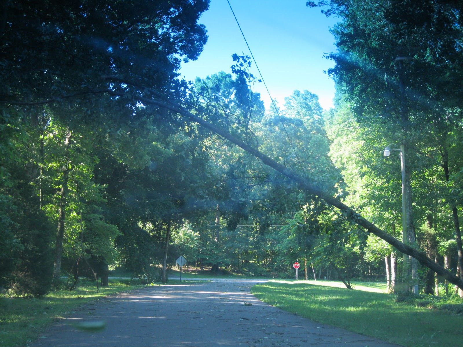 The next morning we stop by the power company to report the downed tree. After taking the information, the weary clerk tells me she worked thirteen hours the day before and was back in at eight o'clock. They called in help from surrounding counties. That afternoon we regained power.