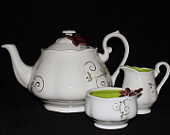 T. J. will be awarding to a randomly drawn commenter during the tour a 4 piece Whimsical Butterfly Tea set. The tea set is handcrafted by artist April Cook of white stoneware slip and painted with a unique whimsical design of a butterfly in lime green and plum glaze. It is both dishwasher and microwave safe. The set includes a 32 oz. tea pot with lid, creamer and sugar bowl. (US ONLY)Encourage your readers to follow the tour and comment; the more they comment, the better their chances of winning. The tour dates can be found here: