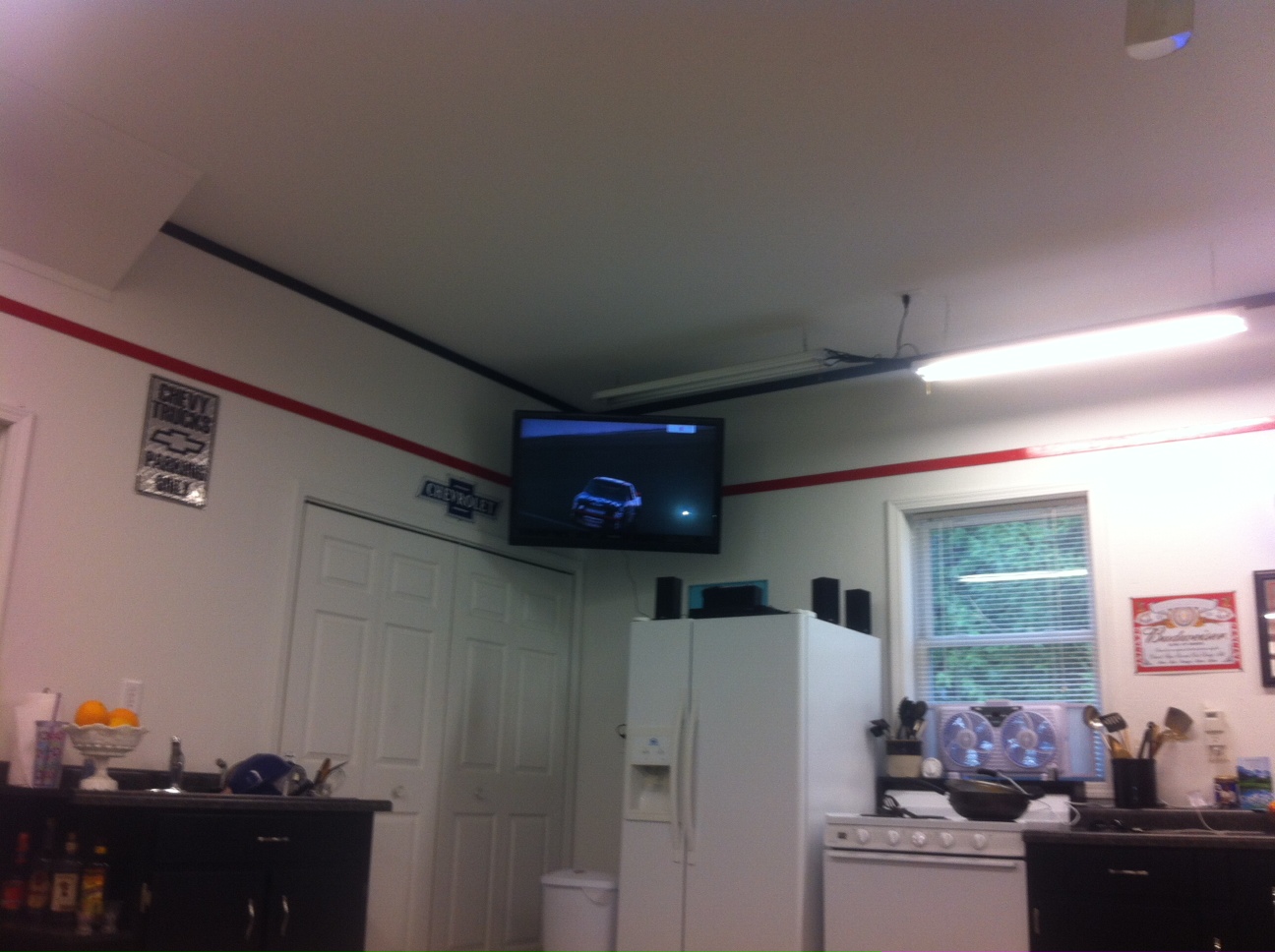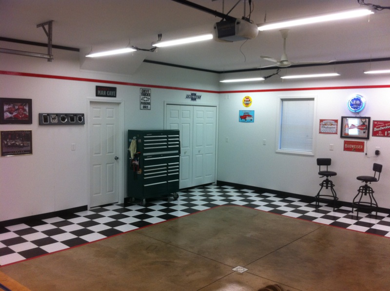 My brother built his own. I've got two brothers. One's a numbers guy. Don't ya hate it? Numbers and I have never been sympatico. And then there's the other brother who's a bit of a Macgyver. He can build or jerry rig anything. Seriously. When I told him over the phone that I'd like a closet and bath added to my bedroom, he walked me through measurements then sent me a blue print. When he wanted an executive desk, he designed it and built it himself. Seat covers for the old truck. No problem. He went out bought an industrial sewing machine and made them. The guy's amazing. Anyway, he decided he wanted a man cave, err garage. He set it up where he could change the oil or wash the car then fix dinner or kick back and watch TV. And its clean enough to do both.