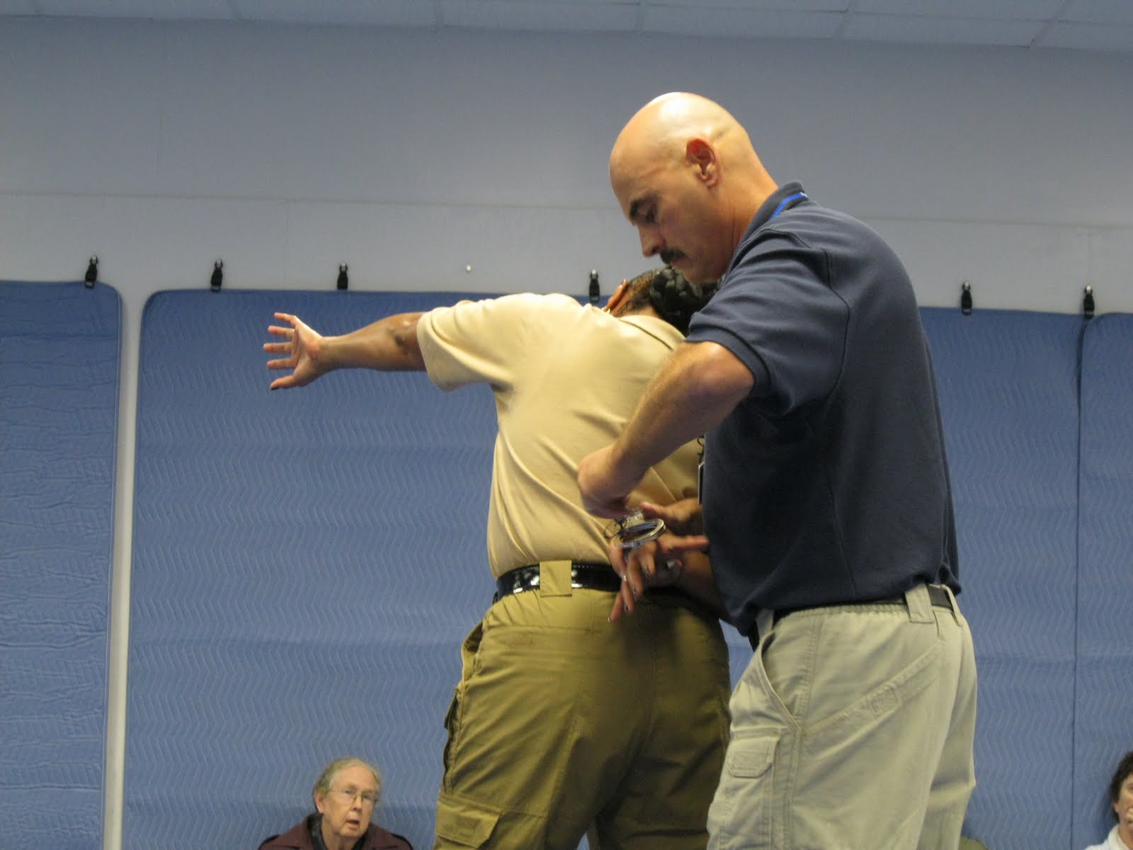 In the afternoon we went to Handcuffing and Arrest Techniques. This was a fun and informative class also. Those suckers aren't as light as they look and if they aren't keyed they will continue to tighten after they've been locked on.