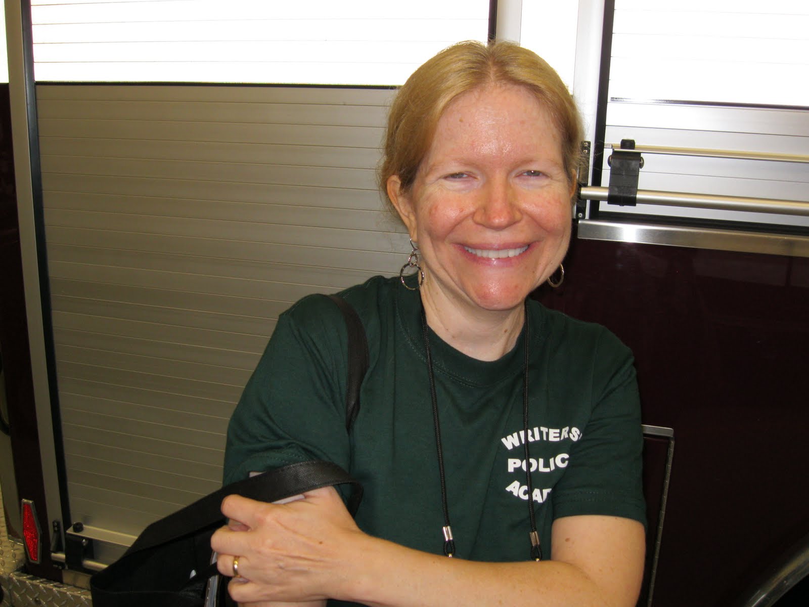 was led by Corporal Dee Jackson. This was on women's person safety. She gave us handouts and taught us two basic self defense moves. Extremely helpful.The last one we attended for the day was Crime Scene Investigation/Photography Workshop led by Bill Lanning. It was a good one too. There was so much rain we didn't get the 'treat' of the smells, but that was okay by me:)