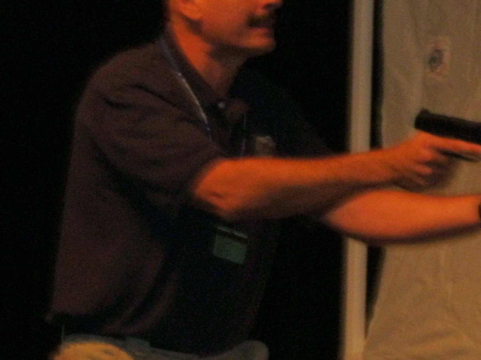 ty a.m. with or without us. Since the first night, my alarm didn't go off and my wake up call came in the p.m. instead of a.m. I spent a lot of the night jerking up and checking the alarm clock:)The day began at eight o'clock were we met in a closed door auditorium and weren't told beforehand what would be going on. We started the day by reading the Law Enforcement Code of Ethics. After that all hell broke loose...in a theatrical sense. They did a reenactment of a hostage situation that was pretty cool. The police were behind their shields on the side of the auditorium and they had a sniper in full dress in the back. As you probably figured out the bad guy went down. Afterward, the sniper spoke to the audience. Pretty interesting stuff. I don't know about you but I've always wondered when a sniper takes a shot, where there's a hostage as a human shield, whether the perp's finger might involuntarily press the trigger when he goes down. After listening to the speaker, my understanding is the sniper has a three inch window of the face to aim for and when they hit inside that window the person drops on the spot, no twitches, they're gone.