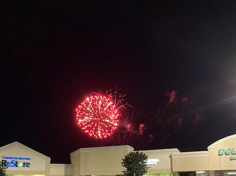 How was your 4th, folks? We went to the fireworks. Before they started I took a sky shot. My camera really didn't catch the strips of pink in the gray clouds.