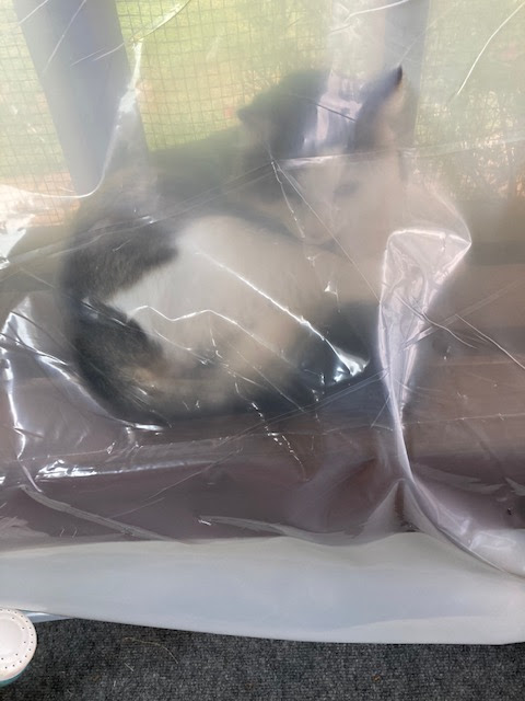 Do you think he's trying to tell us it's time to take the winter plastic off the porch?