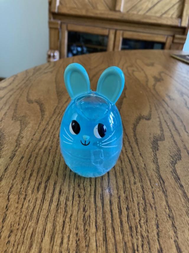 We got home Sunday and the HH and I exchanged Easter Baskets. Something we've been doing for over forty years. Yes, I'm old as dirt. His baskets are always much better than mine. In fact, I think filling the Easter eggs next year is going to be shifted to his job description. Anyhoo, this year he added a mystery bunny to the basket. Neither one of us know what the clear goop inside of it is. He thinks it's a bath gel but I'm not willing to risk an unknown in my bath water. Anyone care to take a guess as to what's lurking inside this particular Easter egg bunny?