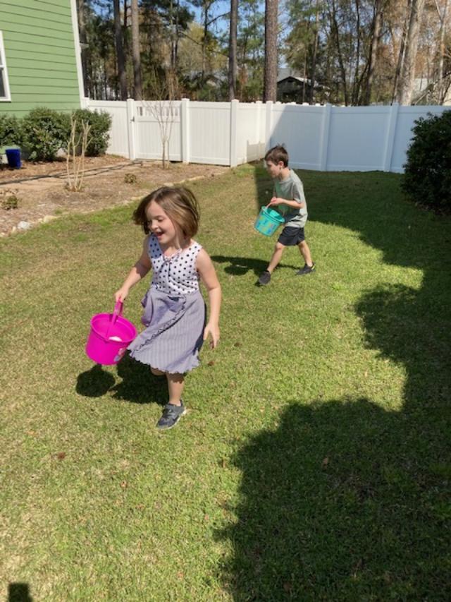 Sunday we had an Easter Egg hunt. I got lazy and got the prepackaged eggs that had stickers and candy in them. Note to self. Next year fill the eggs myself.