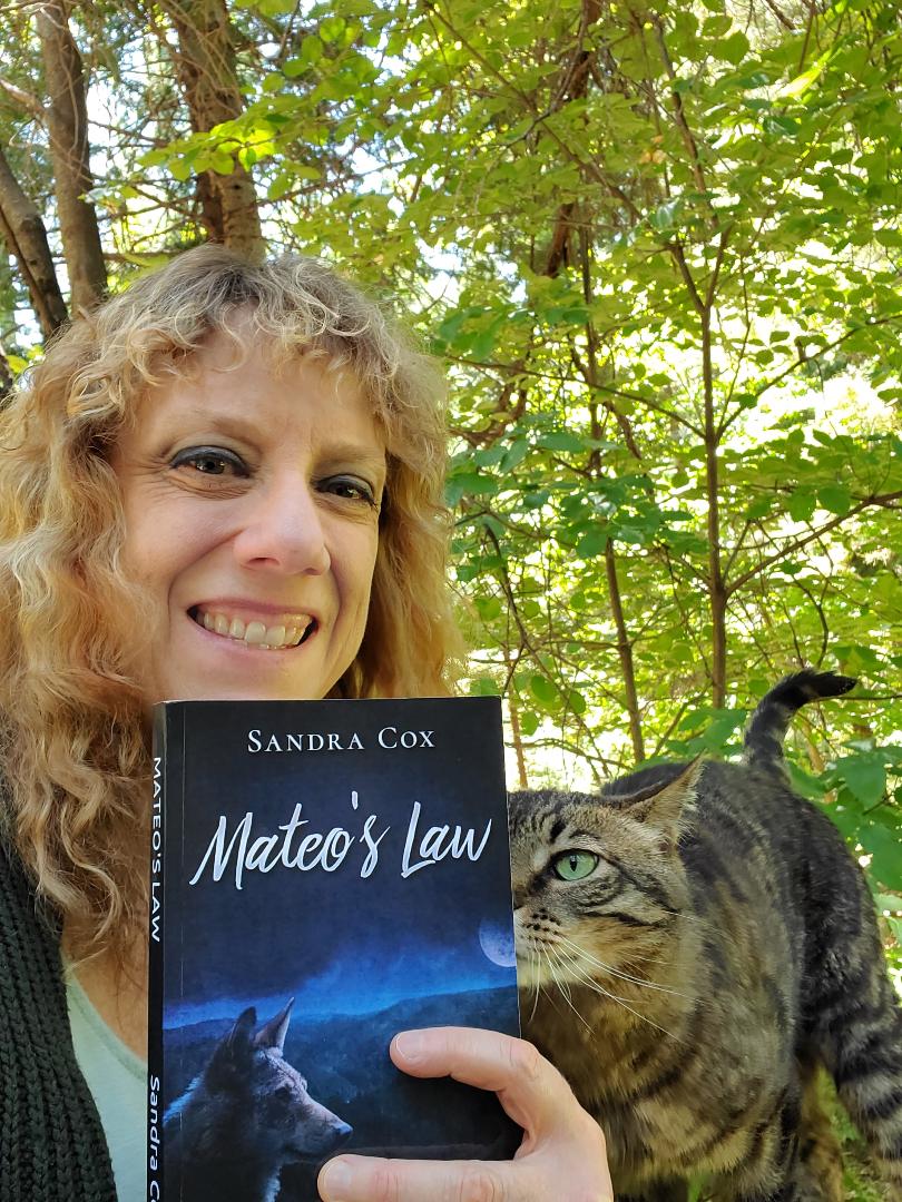 AND...Author bud D. L. Finn and Chester with a copy of Mateo's Law. Chester's a natural, isn't he?
