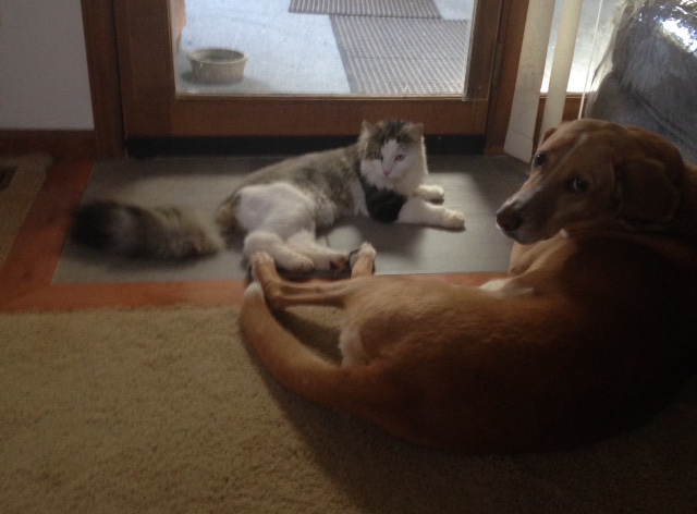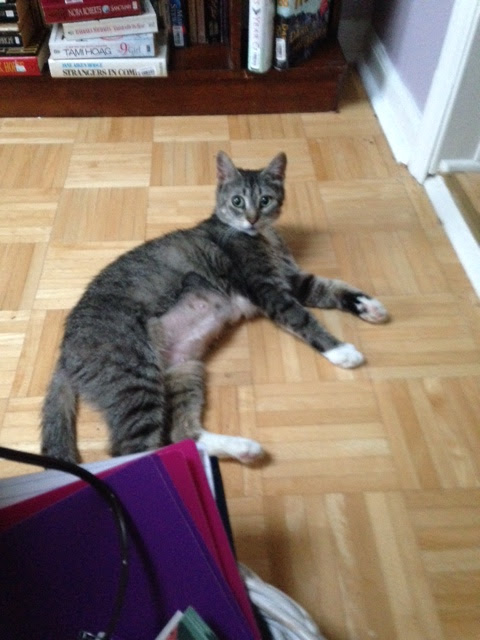 The day after we got home, we picked up Callie Rose. She's a year old and had already had a litter of kittens. So far none of the critters are particularly pleased with the arrangement. Penny and Frank are in one section of the house. Callie is in another. Luckily, Faux has no opinion one way or another.