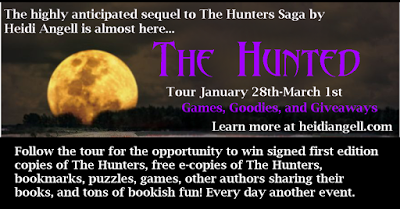 1/13 Announcing the Tour at www.heidiangell.com 1/14 Character Spotlight of Chris for Linda Bloodworth’s blog. 1/15 Why My vampires don't Sparkle on Notes Around the Bend 1/15 Reading by Fiatcelebrity on Twitch My reading begins at 2 hours 8 minutes.1/16 Character Spotlight of Carissa for L.Ryals 1/18 I am participating in Lyndsey Harper’s The Fell Facebook Party. Come by and learn more about The Hunters Saga.1/19 Character Spotlight of Terah on Notes Around the Bend 1/20 A Brief History of Vampires http://www.alteredinstinct.com/ 1/21 Book spotlight and review of The Hunters from Andy Peloquin 1/22 Character Spotlight for Lucas on Kanundra’s blog1/23 Interview with Timothy Bateson1/24 (Character Spotlight) Fireside chat with Havoc and Richard Dale1/25 Youtube Live talk with Joshua Robertson