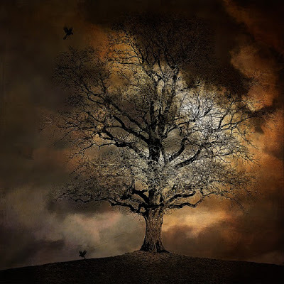 The ancient oak tree stood at the top of the hill, all gnarled and bare, its fallen autumn leaves a crumpled shroud over lifeless grass. A few ebony crows roosted in its branches; dark solemn harbingers of death, awaiting the coming of the midnight hours.Still air breathed an unnatural silence, while the rising moon bathed the sky in a nebulous pale glow. The night dripped an ambience, an expectation that held suspense and terror in its sway. As if it knew. As if it rejoiced.The Horseman was coming.A tinge of sulphur slithered from the loam beneath the leafy rot, the breath of Hell released by untrodden footsteps. The limbs of the oak quivered in the breezeless sky, while the crows screeched a raucous caw and twitched their wings in restless flapping. In the distance the drumming rhythmic thud of hoofbeats sounded their harbinger echo. A fog of sepia dust and ash grey unfurled along the hillside cloaking its vista and shrinking the world to misty obscurity.The Horseman was riding.A stygian nightmare emerged from the fog, an onyx wraith atop a ghostly sable steed. The creature’s long coat flailed in a cloud of malodorous smoke as it rode, its beast’s hoofprints leaving burning impressions in their wake. Petrified skin pulled taunt over its bones, as bony hands gripped the reins, and crimson eyes glared at the world. A tattered uniform of coal cloth and stained brass buttons, along with scuffed black boots, clothed the spectre, a remnant of a persistent but forgotten past. It ran long dead fingers through thin wisps of ebon hair and drew its mount to a halt beneath the oak tree. High in the branches the crows stayed silent and still.The Horseman had arrived.The fog parted, in whirl of choking grime and fetid rot, leaving a clear view of the land beyond. Below the hill, nestled a village in a tranquil hollow, dark and sleeping. The fearsome apparition looked down upon the quaint houses and exhaled, the crackle of fire in its eyes and the whiff brimstone on its breath. It nudged its horse forward and began the canter down the hill. High in the oak tree the crows cawed a futile warning.And the Horseman laughed.