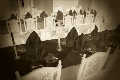 “No, no, no! I want iced monkey brains for dessert! Not monkey brain soufflé!” These chefs were idiots. “If I serve monkey brain soufflé I’ll be eaten alive.” Literally.“If you can’t get it right I’ll change the menu to iced chef’s brains!”I took satisfaction in watching the colour drain from his face and shocked fear pervade his eyes. He scurried back to the kitchen, hopefully to prepare the correct dish.I turned my attention back to the décor. The black candles awaited lighting, placed strategically along the table in gold candlesticks. Pure gold, no iron or silver allowed at this dinner party. Which made acquiring cutlery difficult, but luckily I found some gold sets in storage. Storage also produced an exquisite black and gold set of china dishware. It looked sumptuous against the crimson table cloth with matching placemats and napkins.Thankfully, my predecessor was a pack rat.I walked the long table, eyeing the centerpieces, checking their proper positioning. The florist did a magnificent job of arranging the dead roses and dried leaves. They looked as if they had been moldering on a grave for weeks, and smelled as bad.The guests will adore them. At least I hope they will. They are so mercurial.Next I checked the curtains, making certain the heavy red velvet drapes were drawn tight, and then turned each sconce down to the lowest light setting. I stepped back and surveyed that the room for the ideal ambience.Perfect. Dim, but not too dark, with enough shadows to set the mood. Now for the last menu check.I scanned my copy.