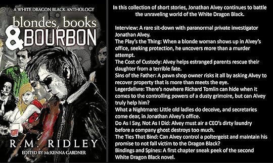 Today I have another spotlight, this time for the new urban fantasy anthology, Blondes, Books & Bourbon by R. M. Ridley, released today. This post is also to help support the Xchyler Publishing book bomb event for the GiveForward Grauer fund. All royalties in connection with the debut of his White Dragon Black short story anthology are being generously donated by R. M. Ridley.