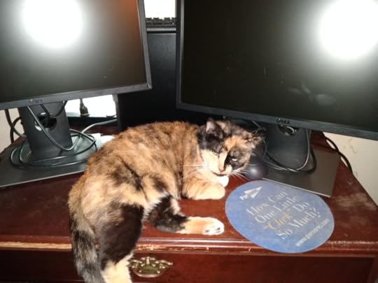 First thing this morning, my hope crashed and burned. I had to constantly shoo away cats so I could work. Every time I got up to get a drink of water or go to the bathroom, I’d come back to Cat-Desk.