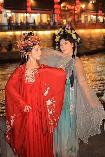 The operation began at 4:30 p.m. in a photo studio. Because my sister knew the owner, the girls received VIP treatment with the best photographer, the best makeup artist, and, I suspect, the heaviest headgear in Jiangsu province. Each makeover took over an hour. By the time the photographer whisked them off to a bridge overlooking the Qinhuai River, the sun was setting, the red lanterns were glowing, and the teahouses were shimmering invitingly in the water.